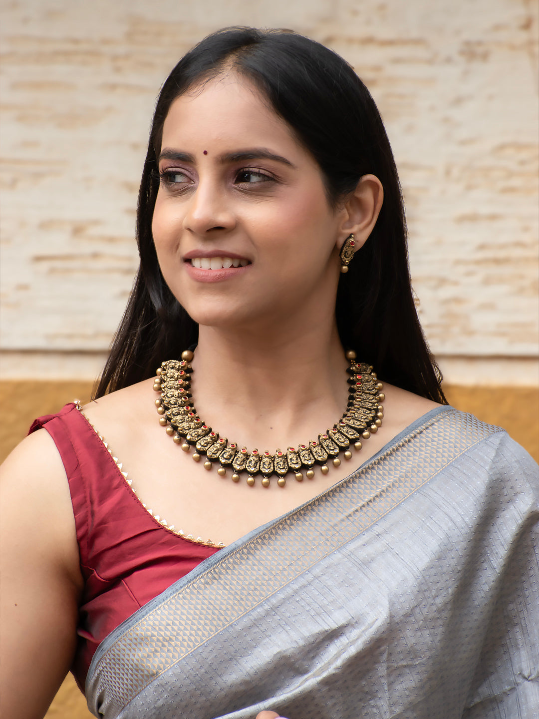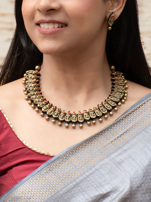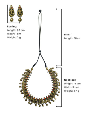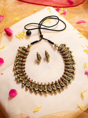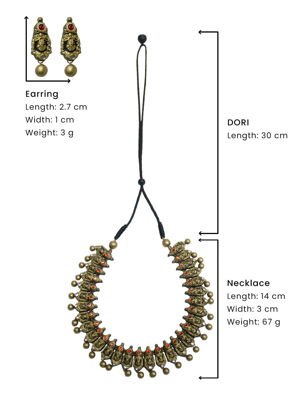 Antique Gold Red White Kundan Stone Medieval Art Handmade Terracotta Necklace Set