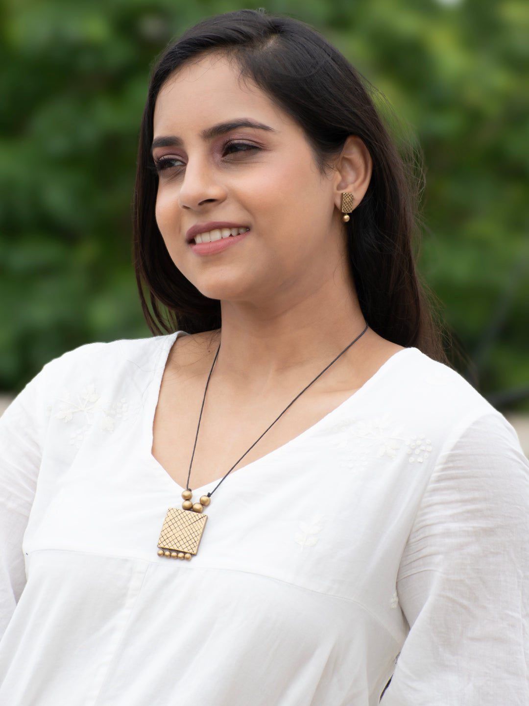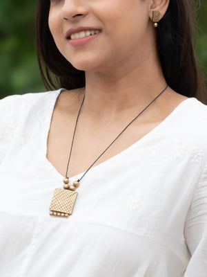 Antique Gold Square Design Minimalistic Handmade Terracotta Necklace Set