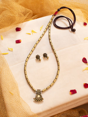 Antique Gold Tubular Design Single Line Mala Handmade Terracotta Necklace Set