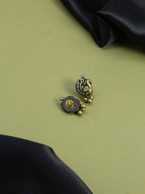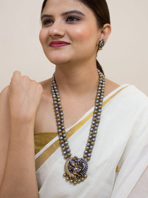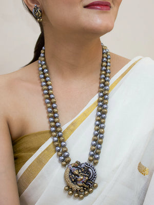 Antique Gold Ganesha Design Long Temple Handmade Terracotta Necklace Set