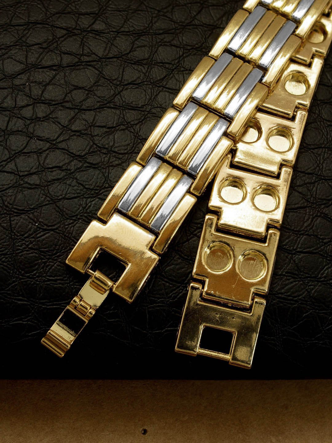 Avismaya Gold And Silver Plated Geometric Design Mens Bracelet