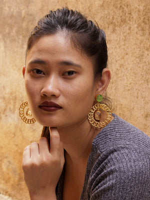 Avismaya Gold Plated Semi-precious Monalisa Stone Designer Earrings