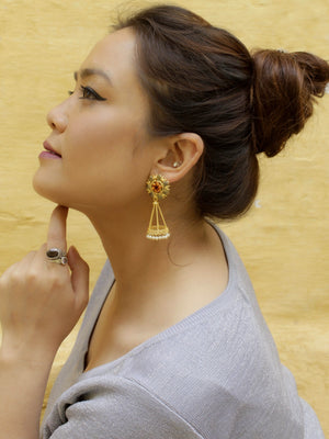 Avismaya Gold Plated Solar Synthetic Pearls Designer Earrings