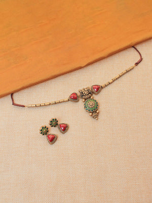 Aaradhya — Beautfully Handcrafted Floral Design Gold, Red, and Green Jewelry Set
