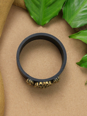 Home Kanchi Kada — Black Antique Gold Kada Style Peacock Design Handmade Terracotta Bangle