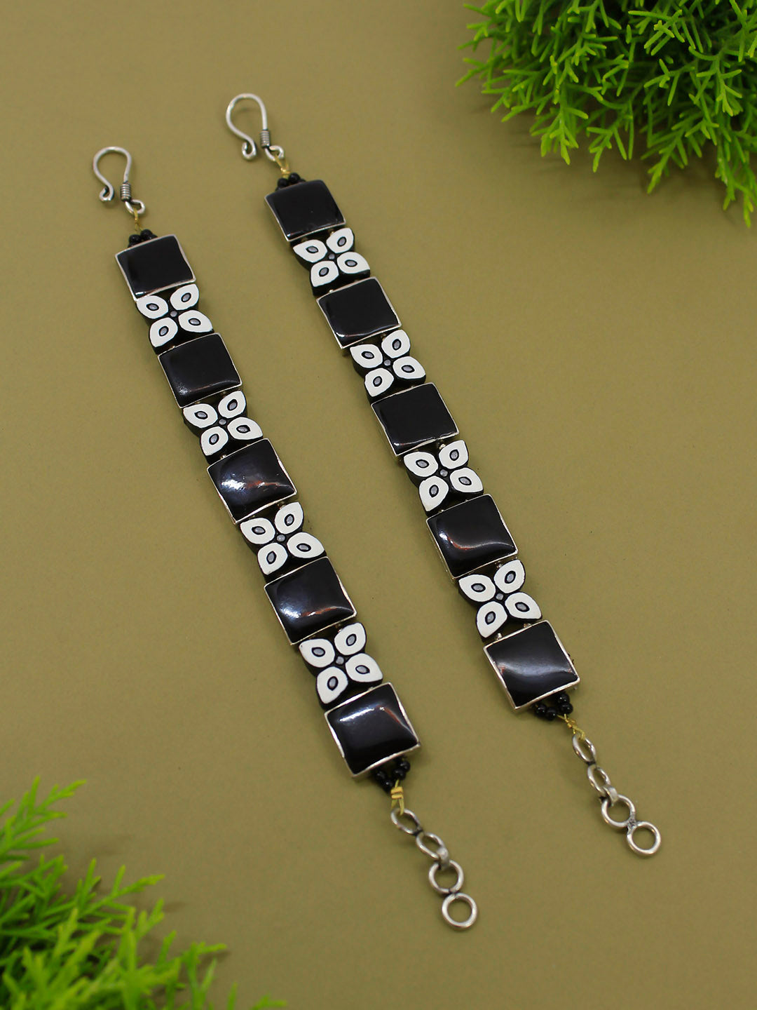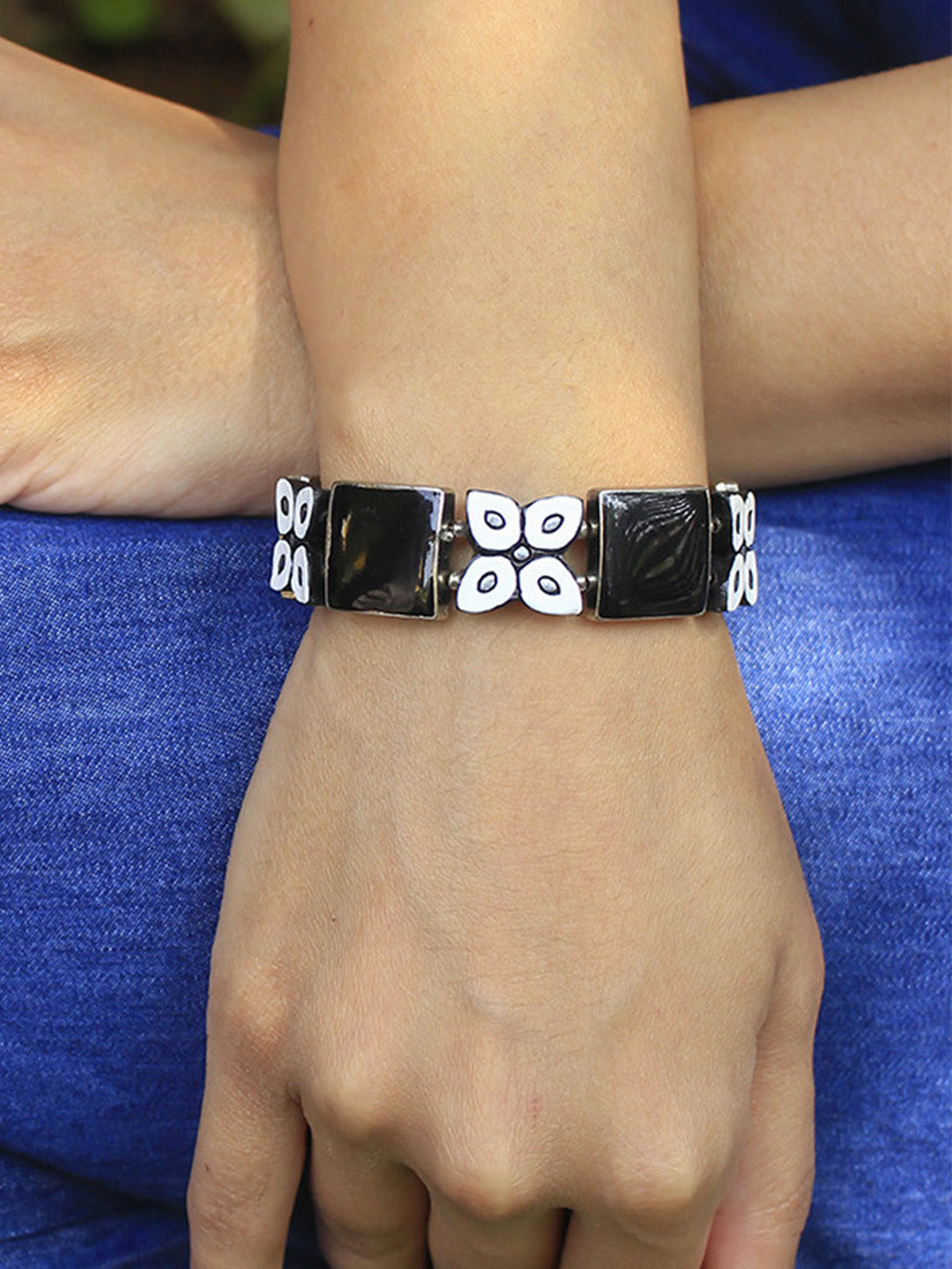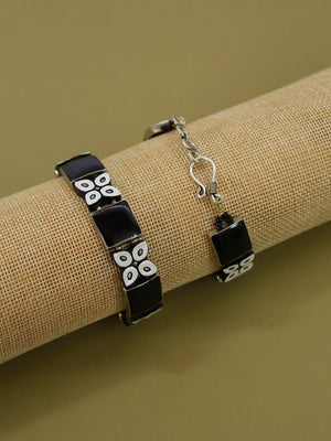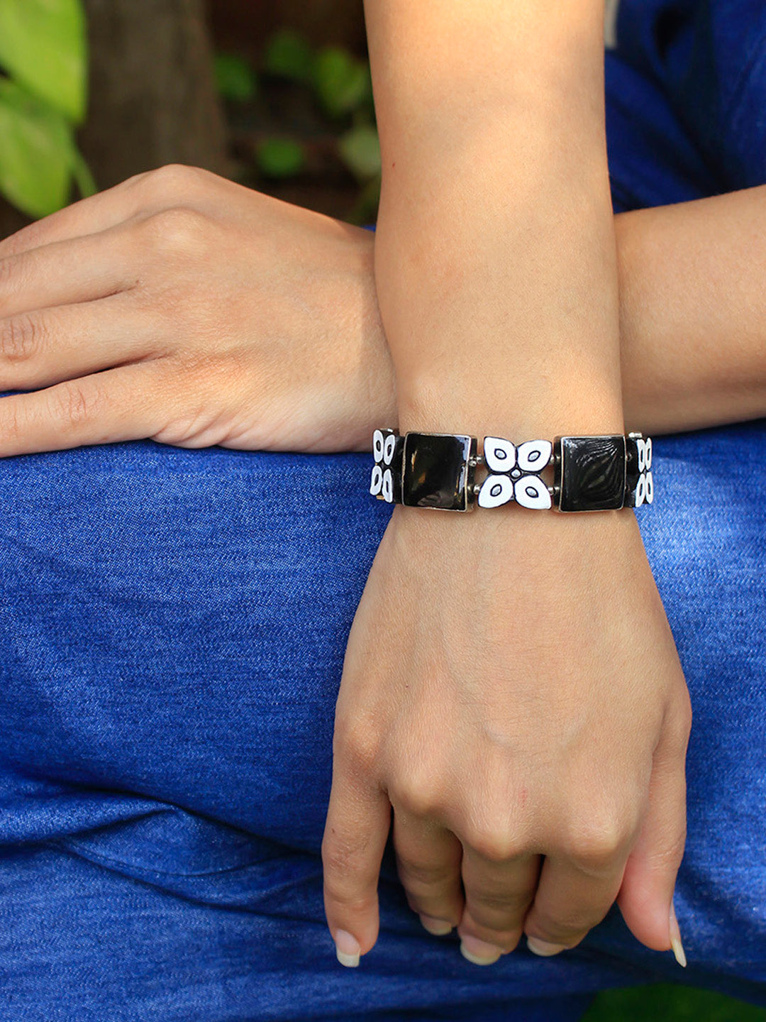 Handmade Terracotta Floral Cubic Design Black White Grey Silver Colour Kundan Stone Bracelet