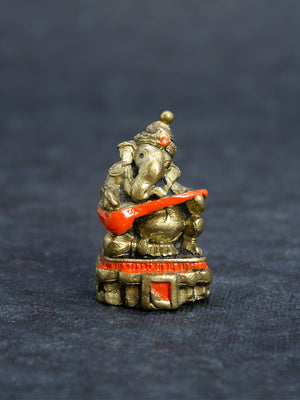Handmade Terracotta Lord Ganesha Idol in Antique Gold# Cadmium Red for Gifting