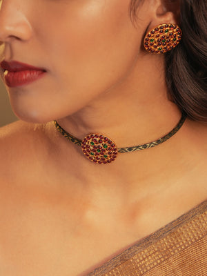 Zarimah — Gold Tone Temple Necklace Set- Jada Billa zari Choker Black