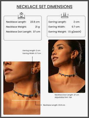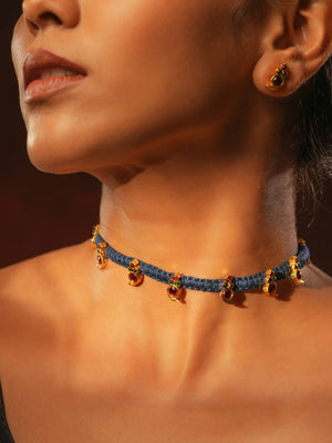 Gold tone temple necklace set-Blue Thread Choker