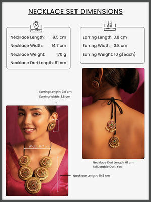 Gold Tone Coined Temple Necklace Set-V Pink