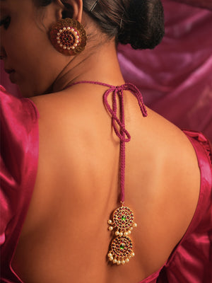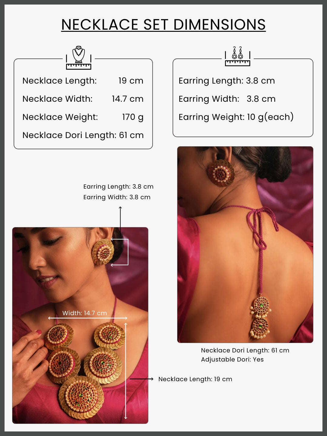 Gold Tone Coined Temple Necklace Set-V Black