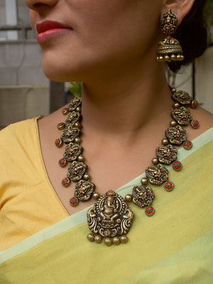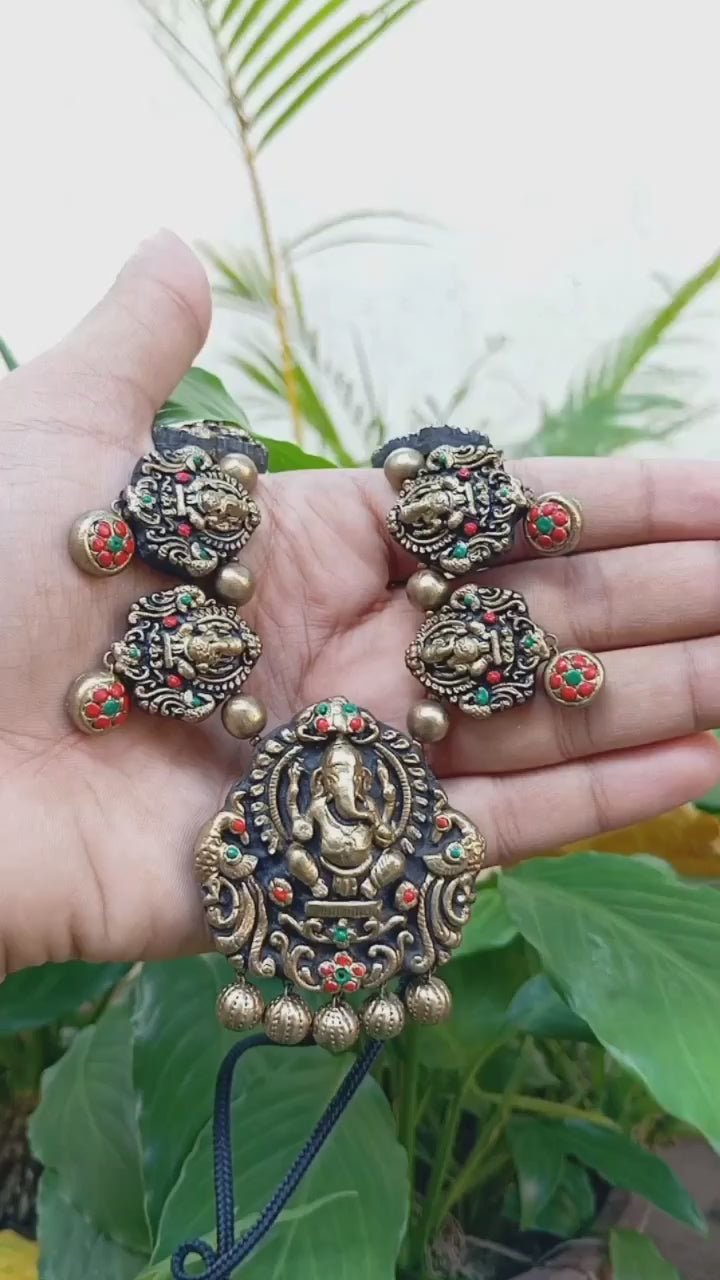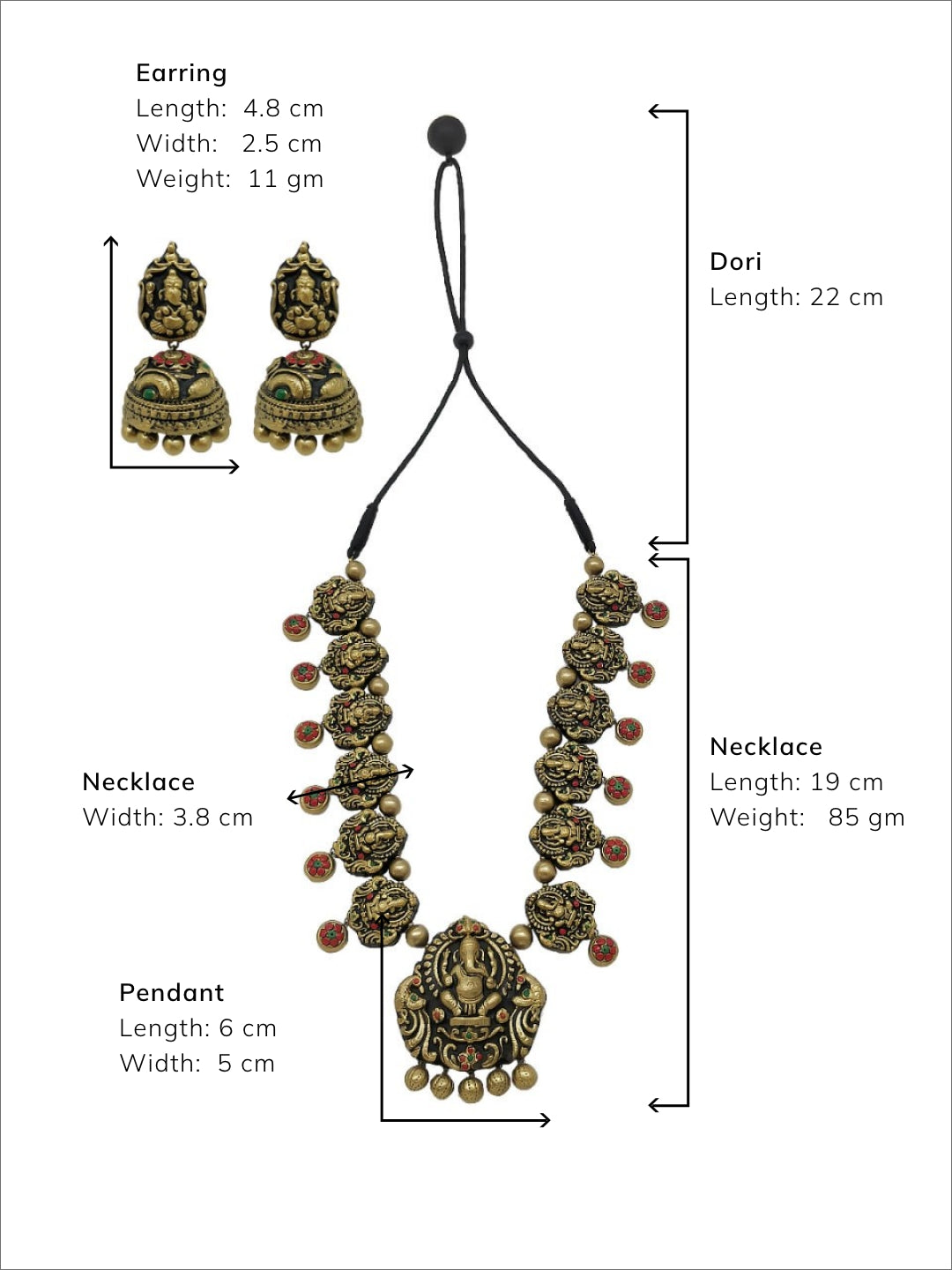 Ratnapushpa Lambodara — Ganesha Design Hand Painted Finish Terracotta Jewellery Set