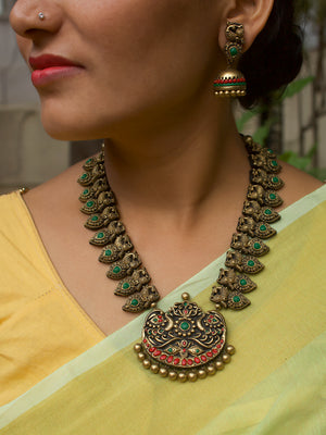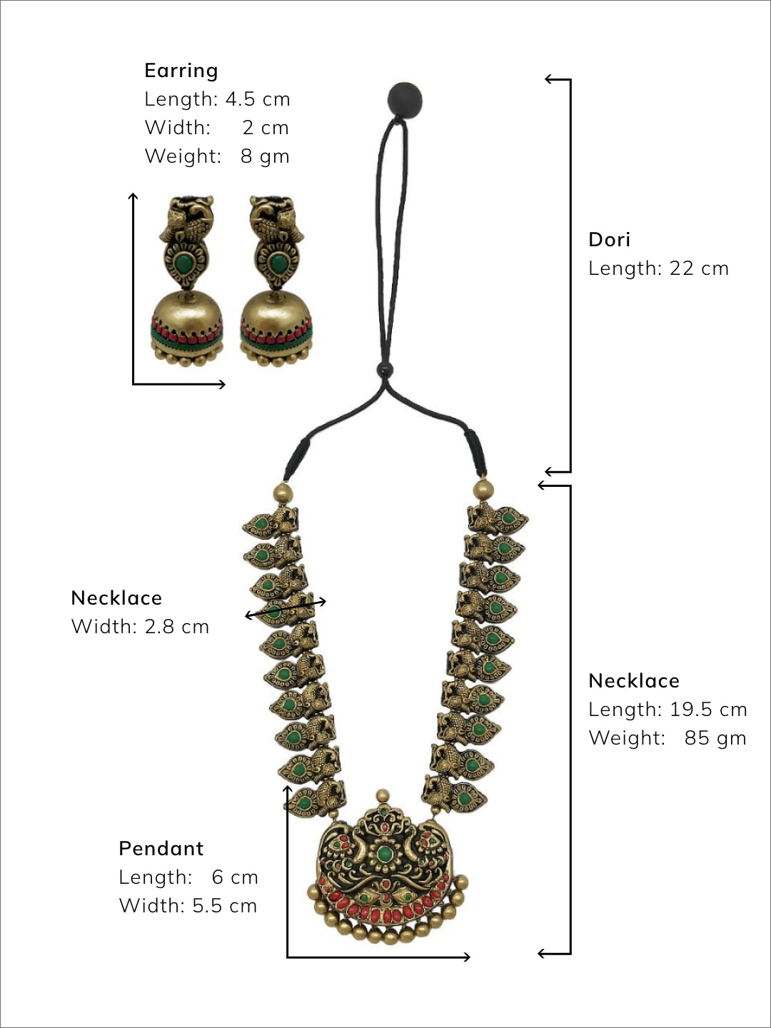 Peacock Design Hand Painted Finish Terracotta Jewellery Set