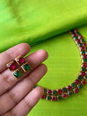 Square Design Hand Painted Finish Terracotta Jewellery Set