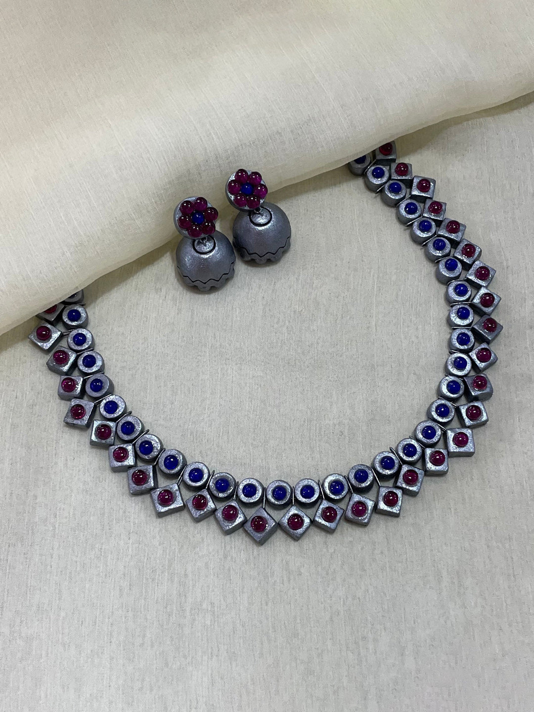 Circular Design Hand Painted Finish Terracotta Jewellery Set