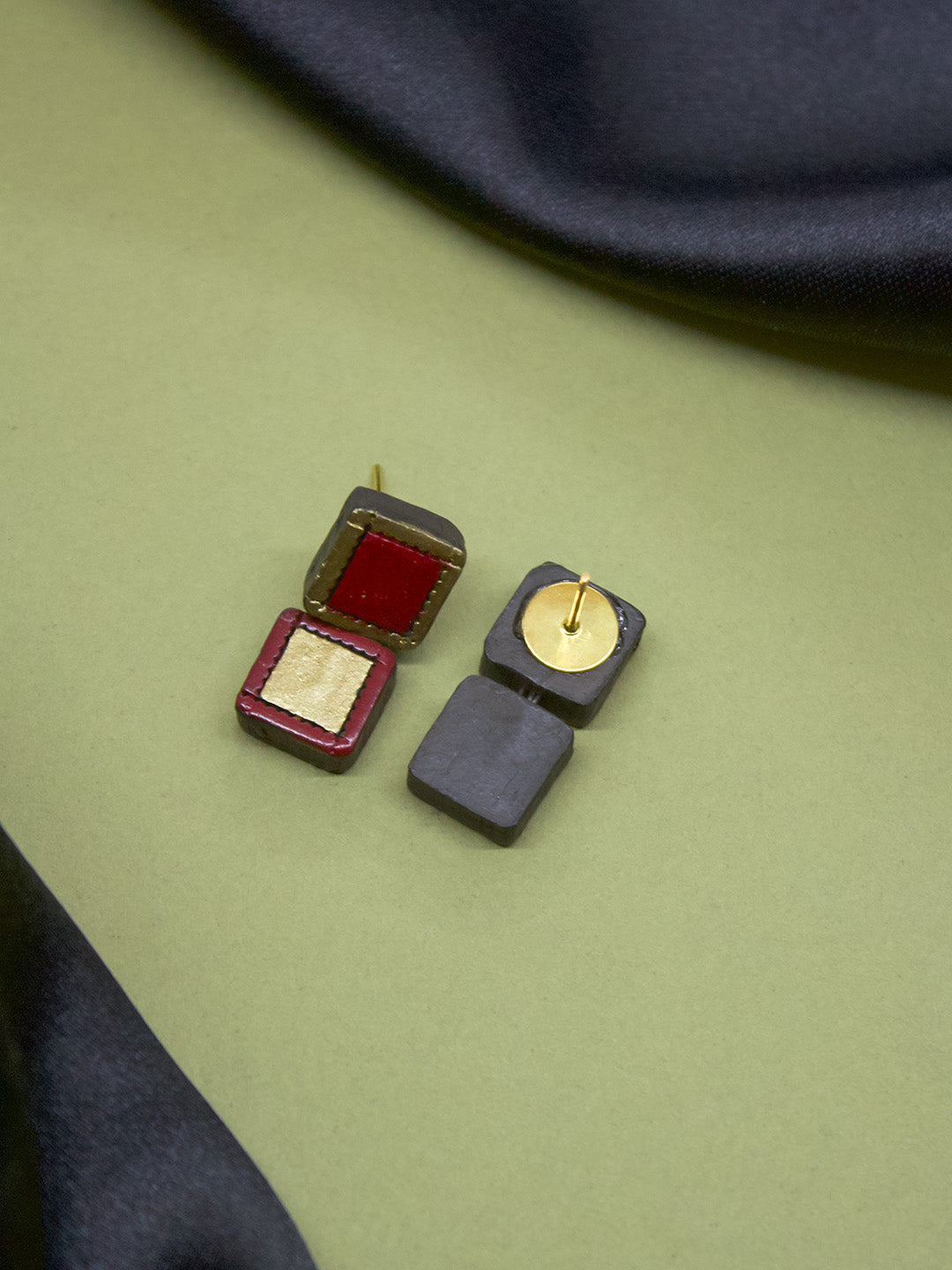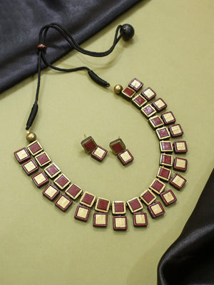 Square Design Hand Painted Finish Terracotta Jewellery Set