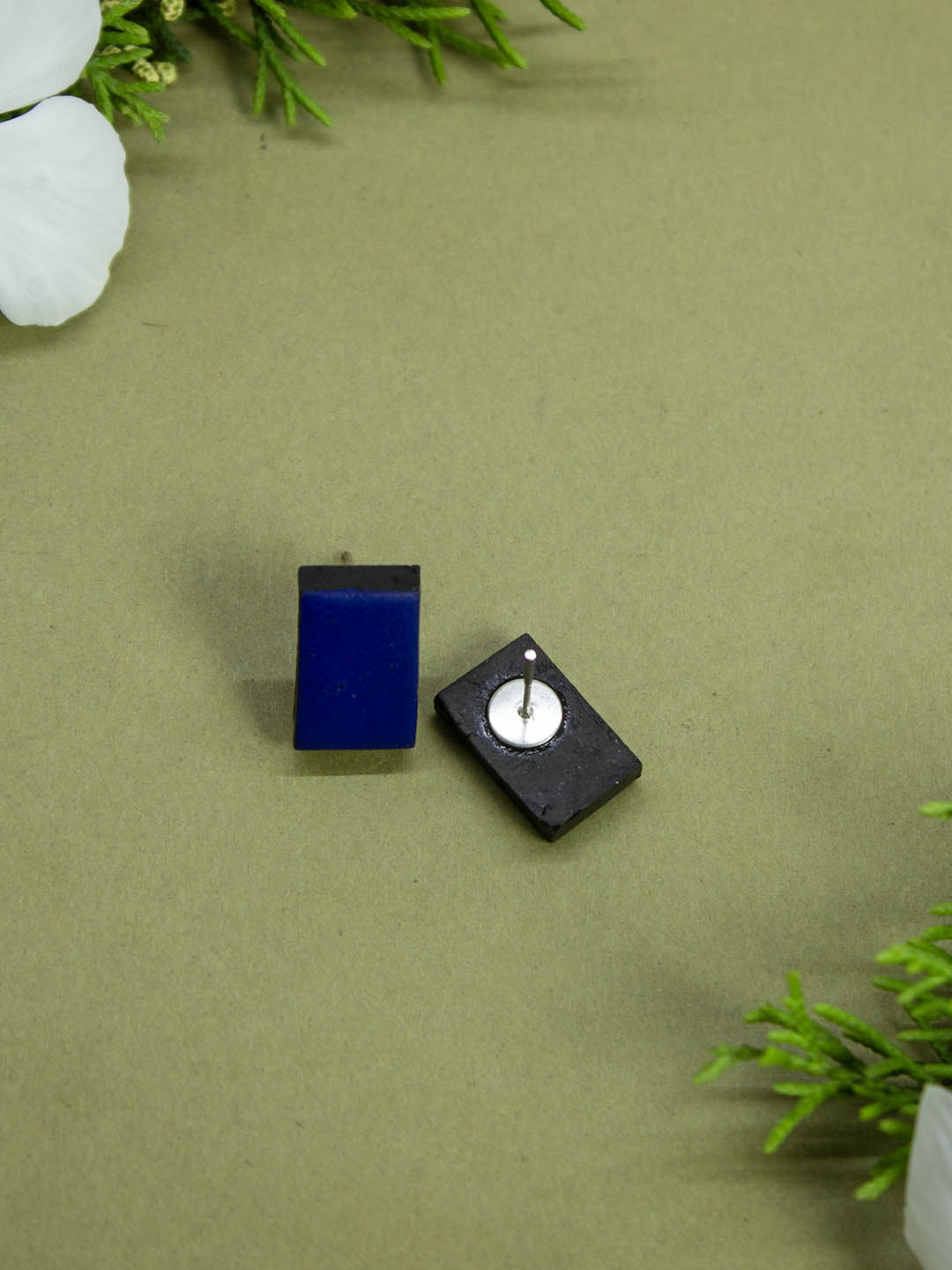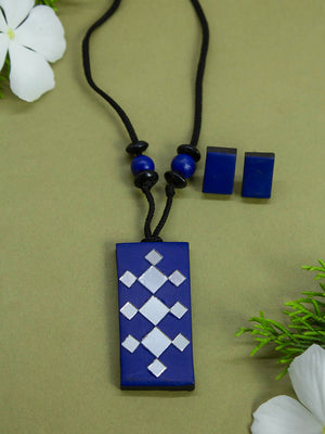 Blue Geometric Rectangular Shape Mirror Design Work Minimalistic Handmade Terracotta Necklace Set