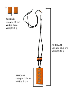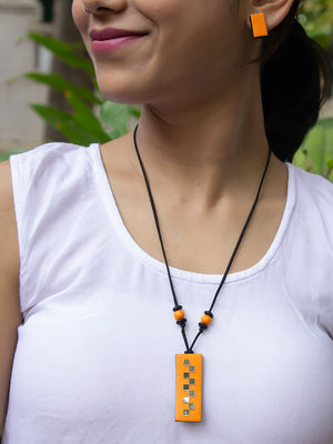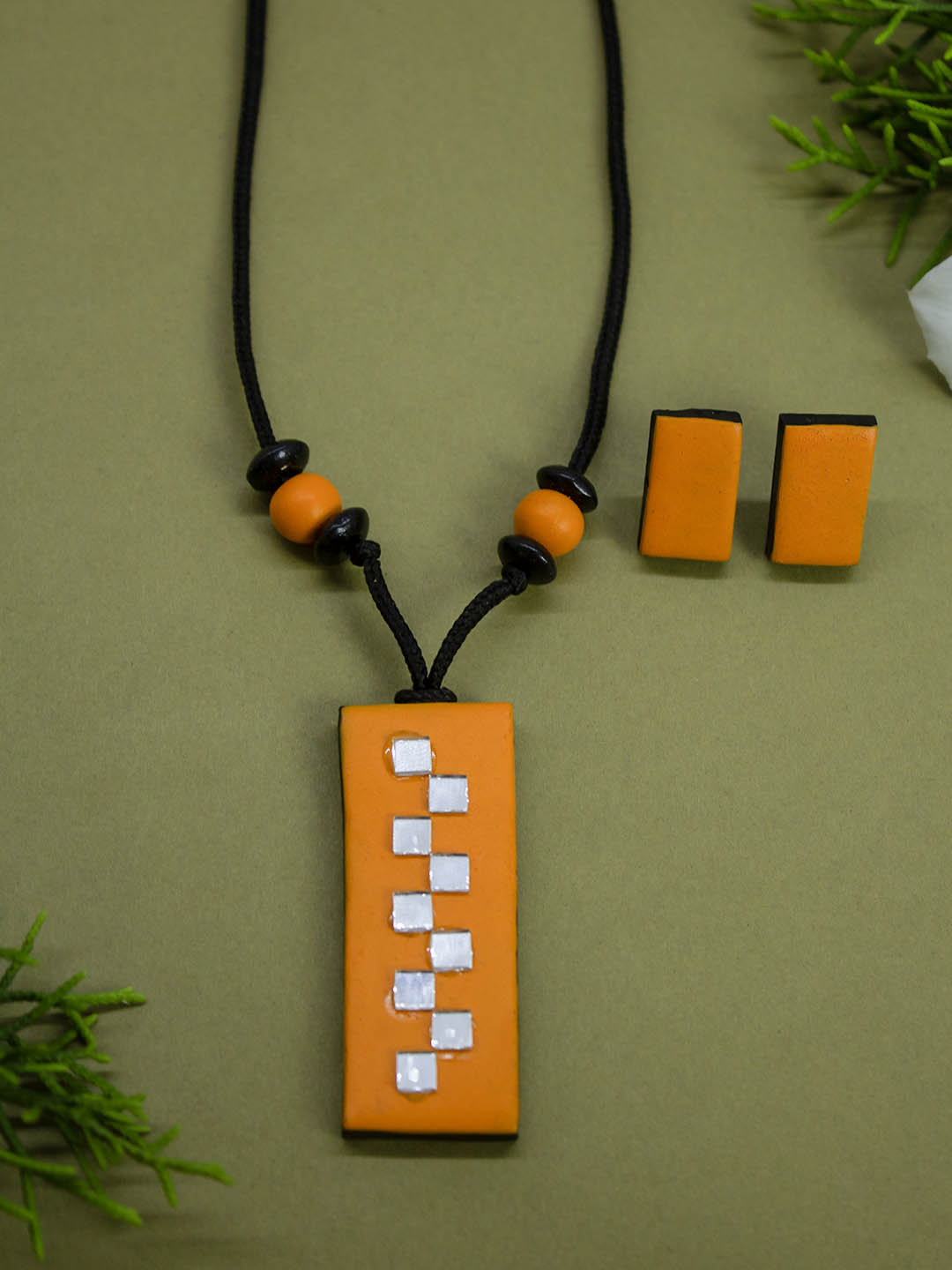 Orange Geometric Rectangular Shape Mirror Design Work Minimalistic Handmade Terracotta Necklace Set
