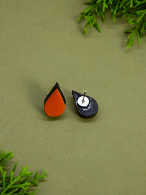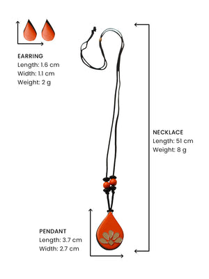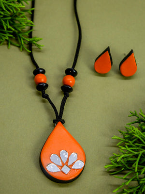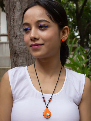 Orange Pear Shape Mirror Design Work Minimalistic Handmade Terracotta Necklace Set