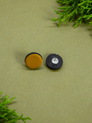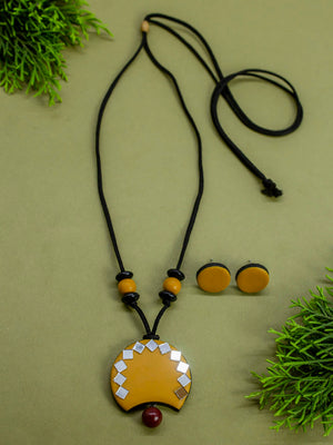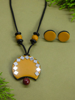 Yellow Crescent Moon Shape Mirror Design Work Minimalistic Handmade Terracotta Necklace Set