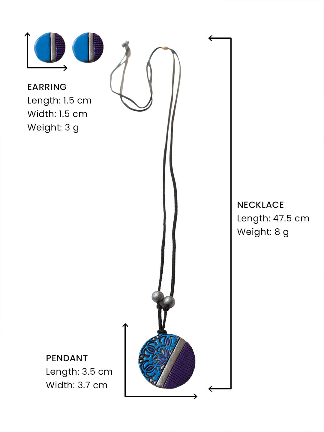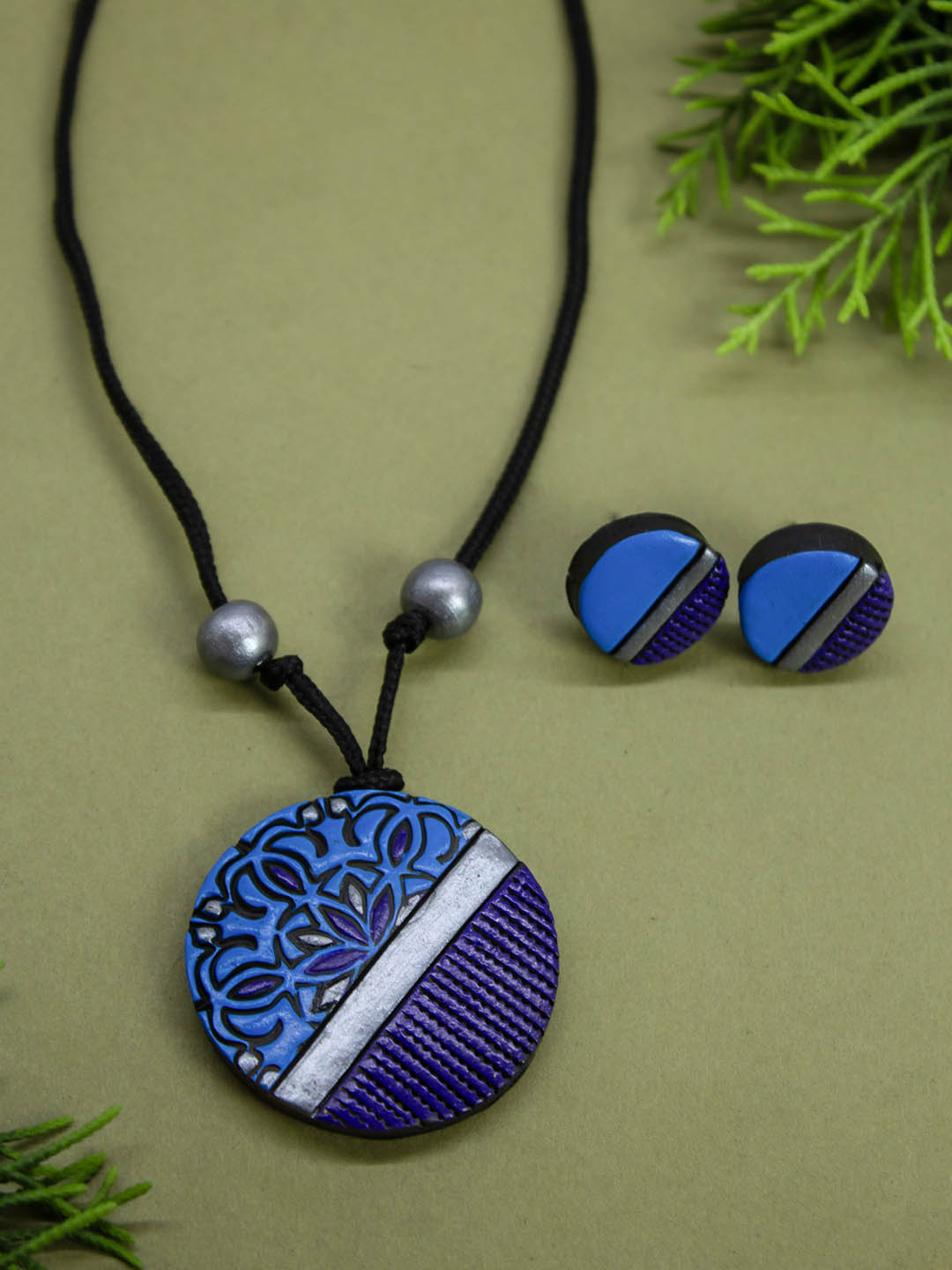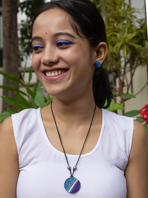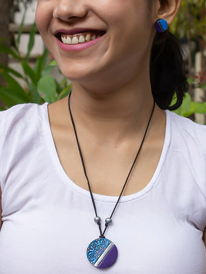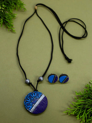 Circular Design Blue Purple Mandala Art Design Minimalistic Simple Terracotta Necklace Set