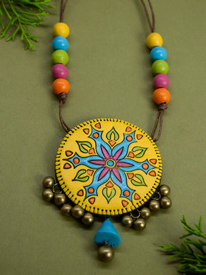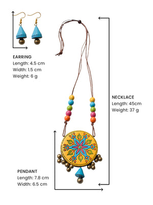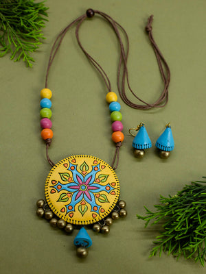 Circular Design Yellow Blue Orange Pink Pastel Shades Mandala Art Design Boho Handmade Terracotta Necklace Set