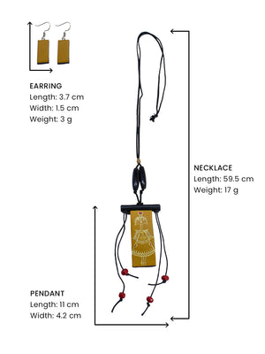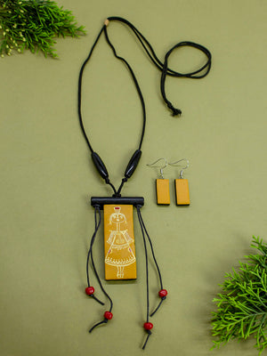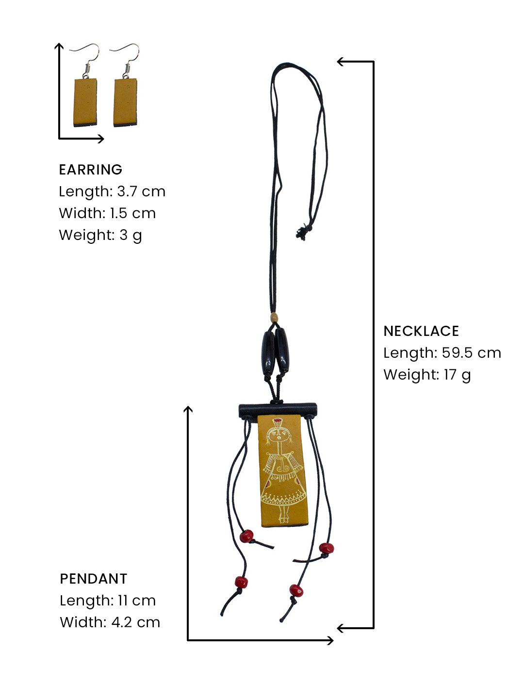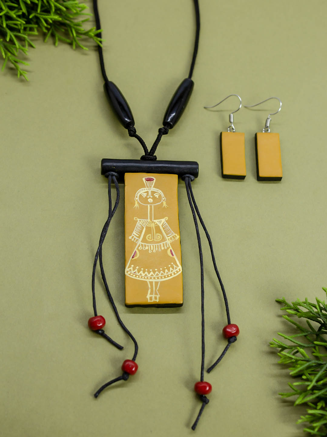 Orange White Red Rectangular Shape Folk Art Warli Art Painting Handmade Terracotta Necklace Set