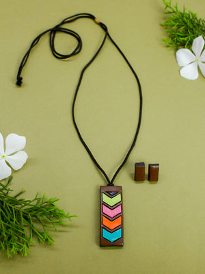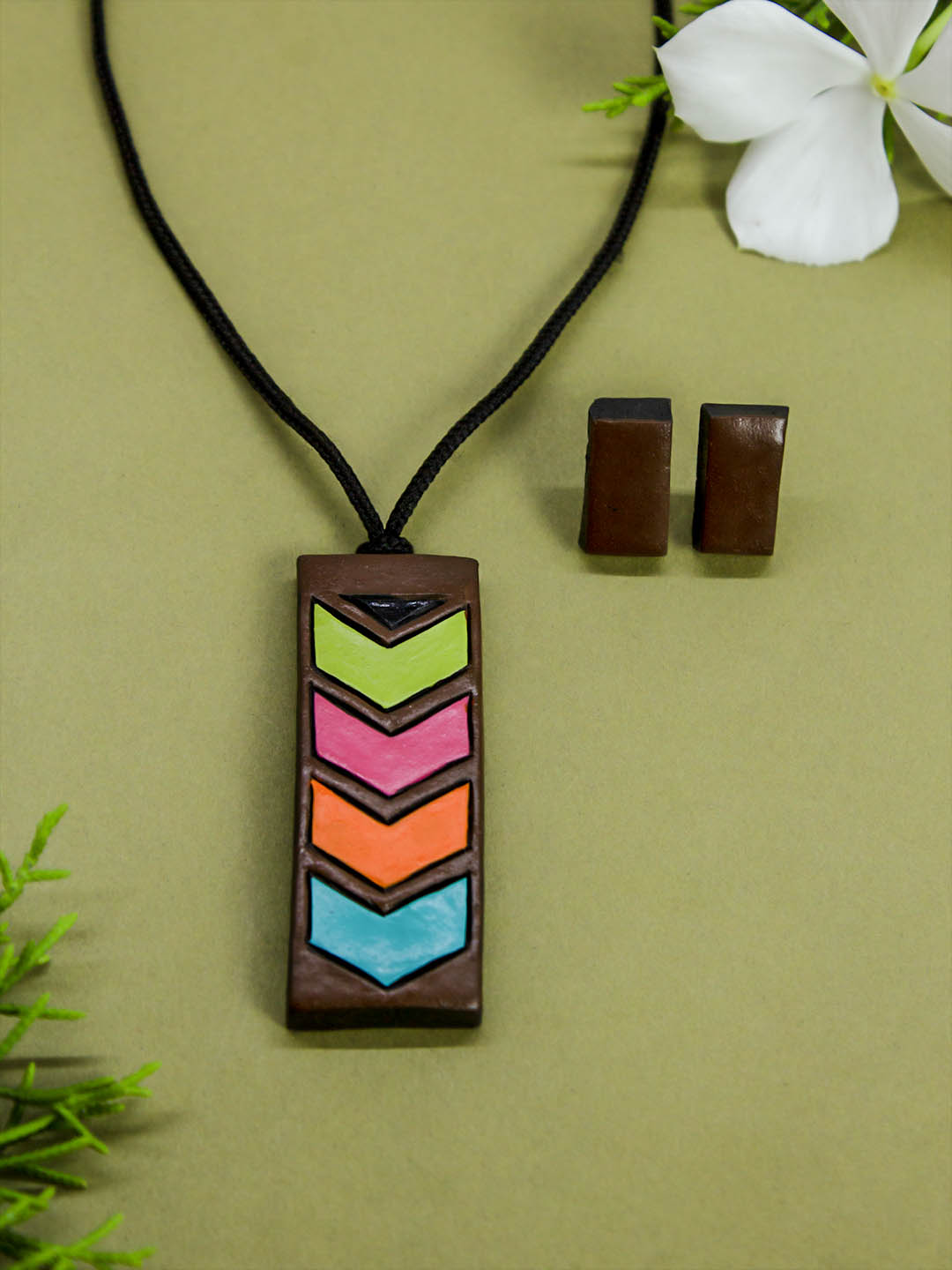 Home Brown and Pastel burst of pride colors retro style handmade terracotta necklace set