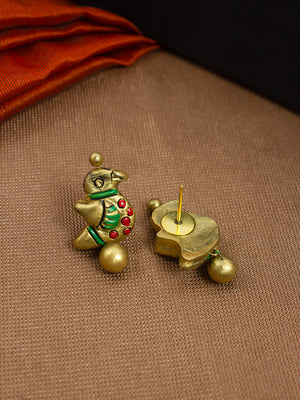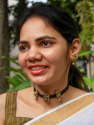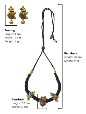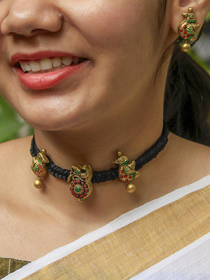 Braided Rope Quirky Bird Design Choker Antique Gold Red Green Handmade Terracotta Necklace Set