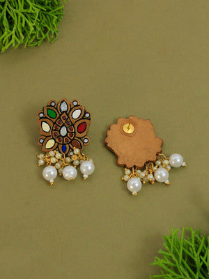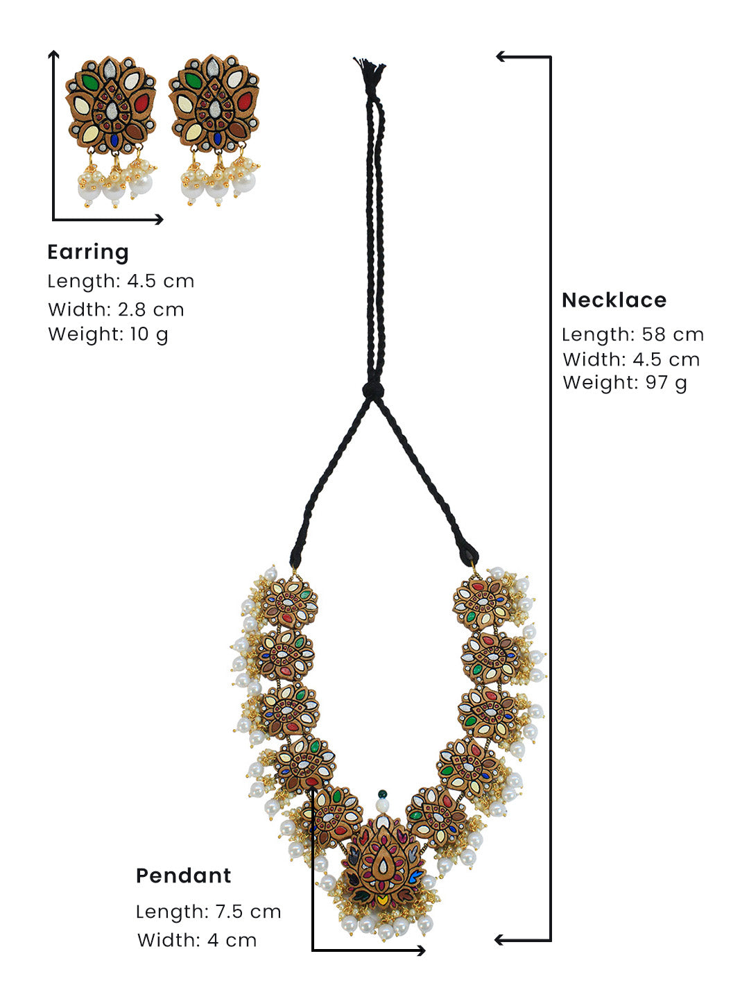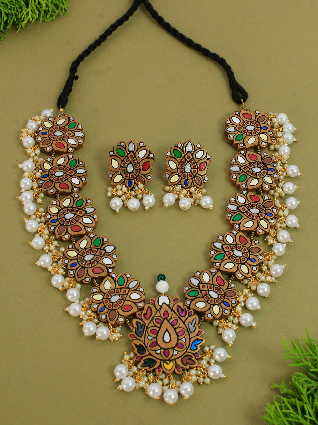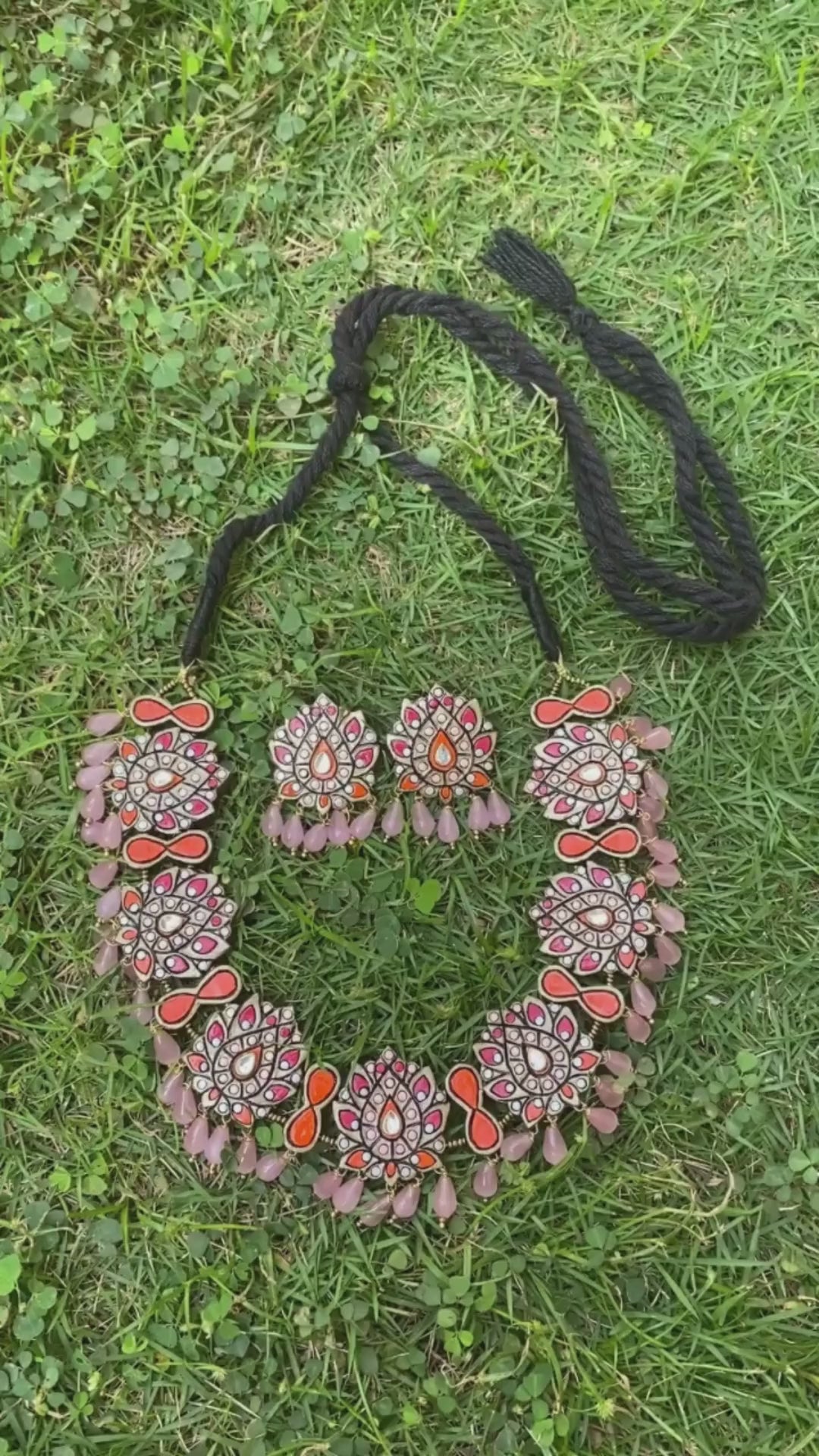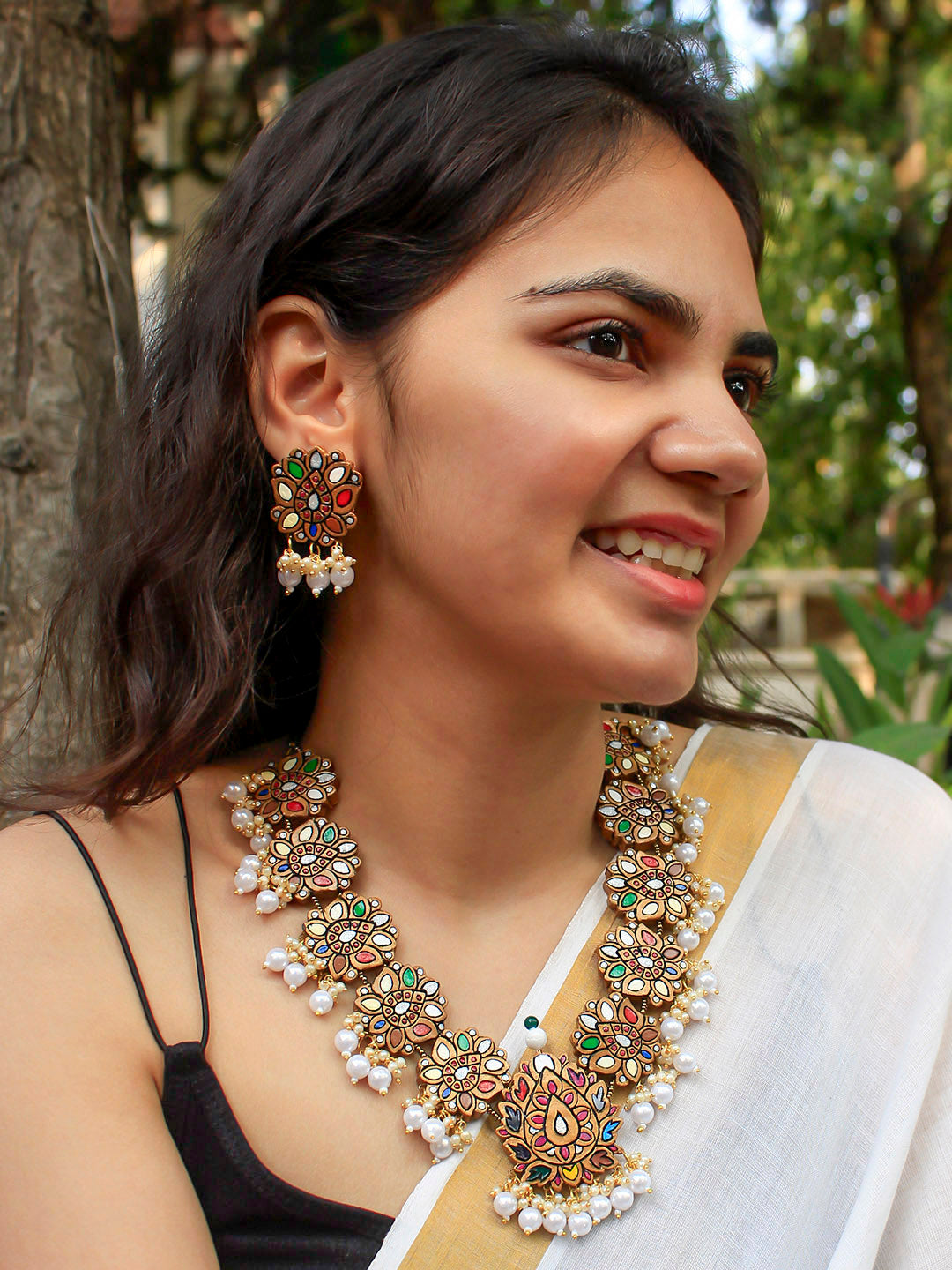 Colorful Multicolour Lotus Design Gold White Silver Red Handmade Terracotta Necklace Set