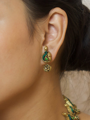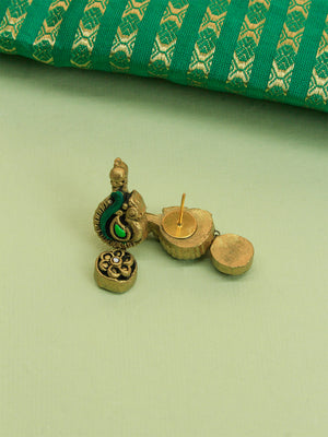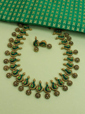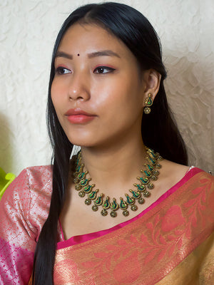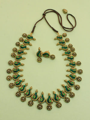 Antique Gold Green Peacock Design Handmade Terracotta Necklace Set