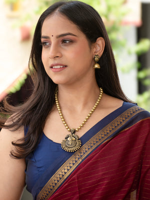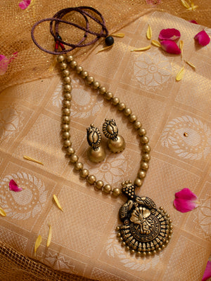 Pure Antique Gold Colour Gopalakrishna Pendant Temple Beads Mala Handmade Terracotta Necklace Set