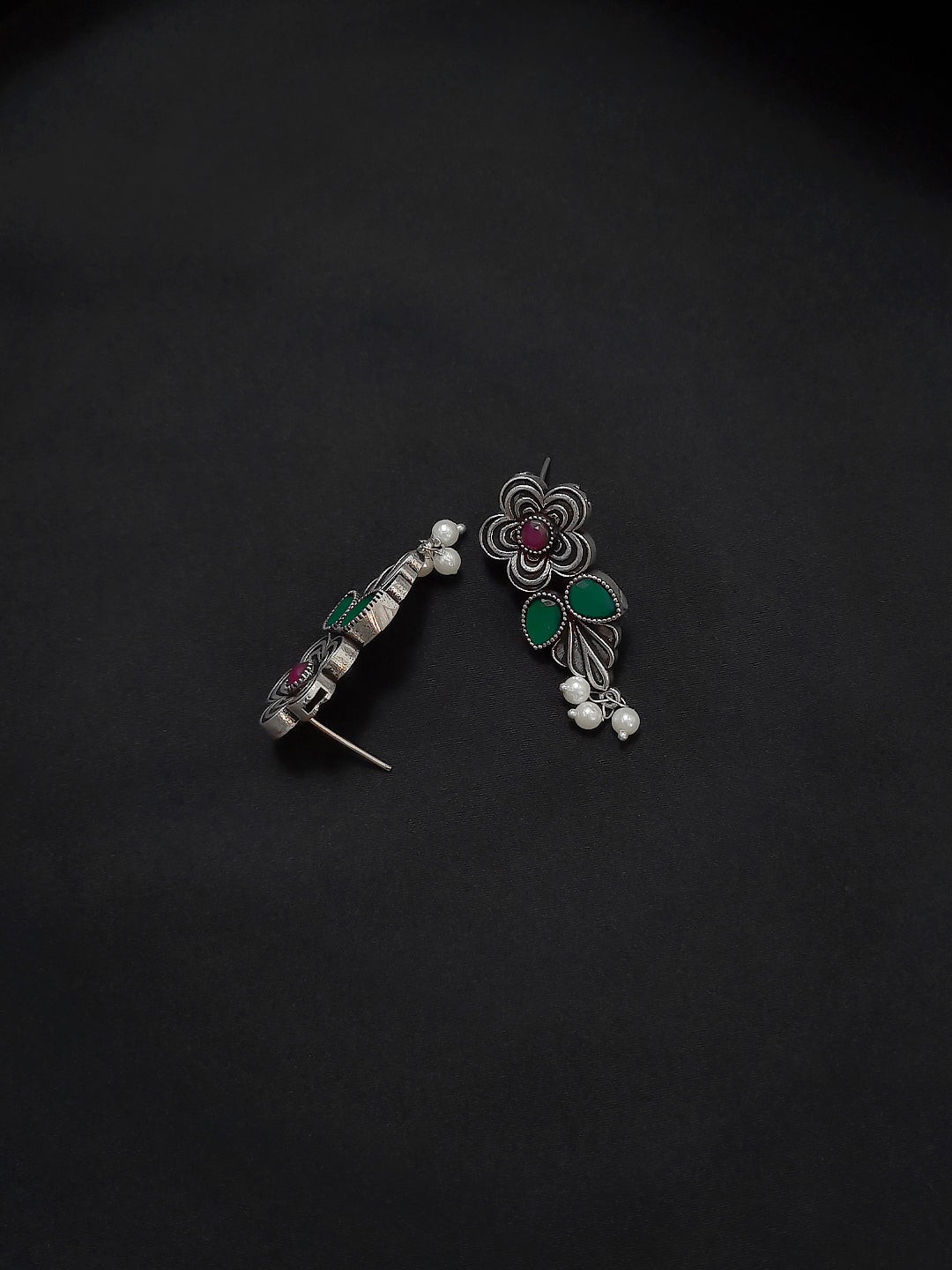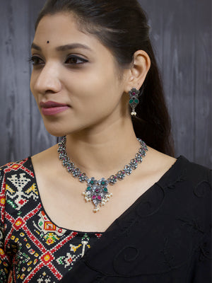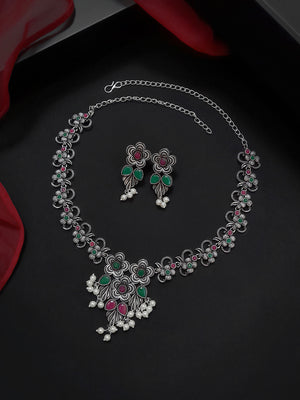 Flower Design German Silver Necklace Set