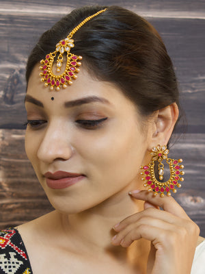 Flower Design Copper Earring and Maang Tikka