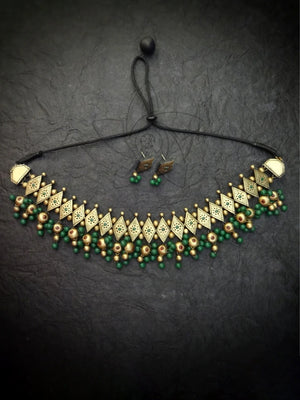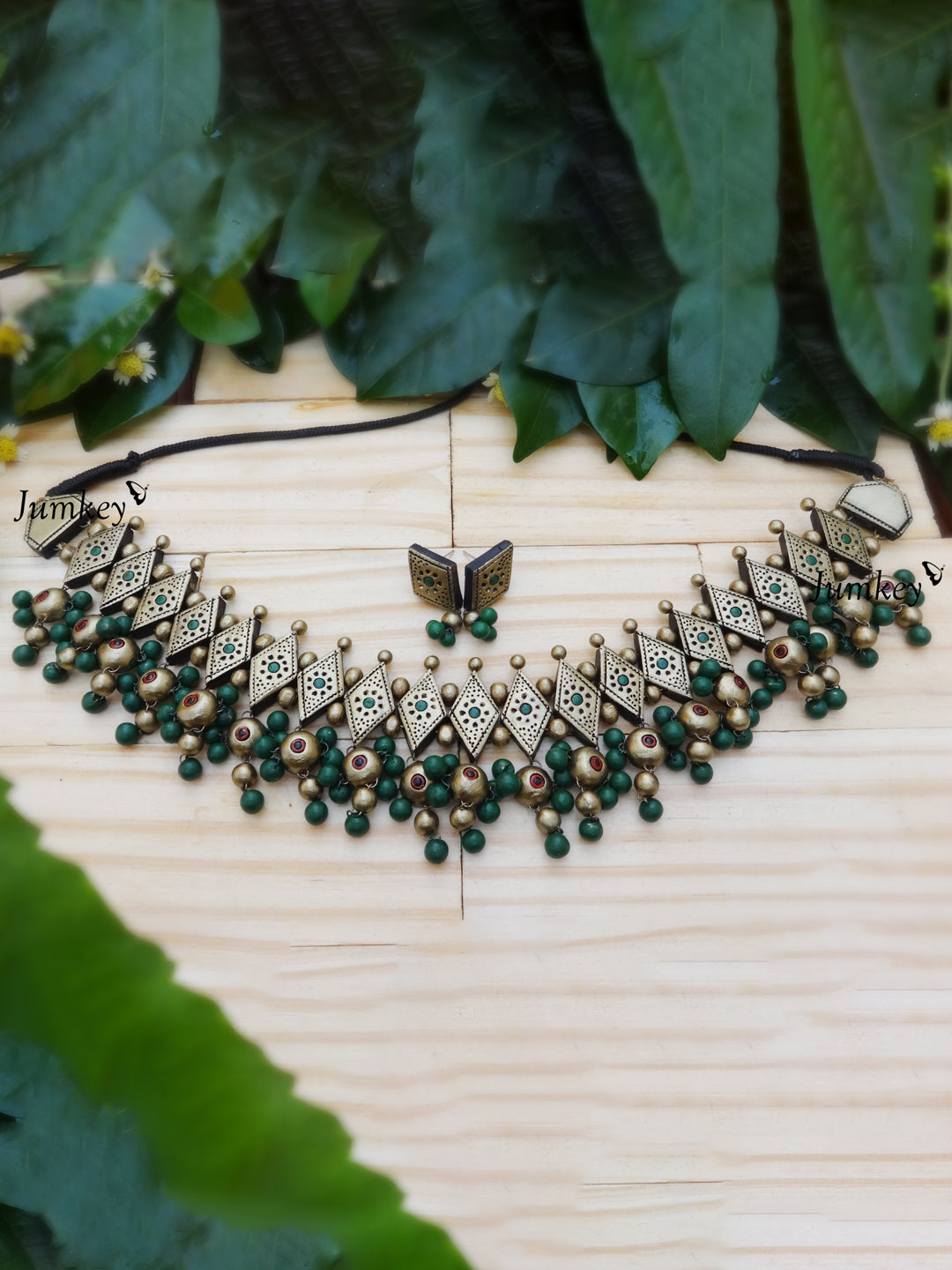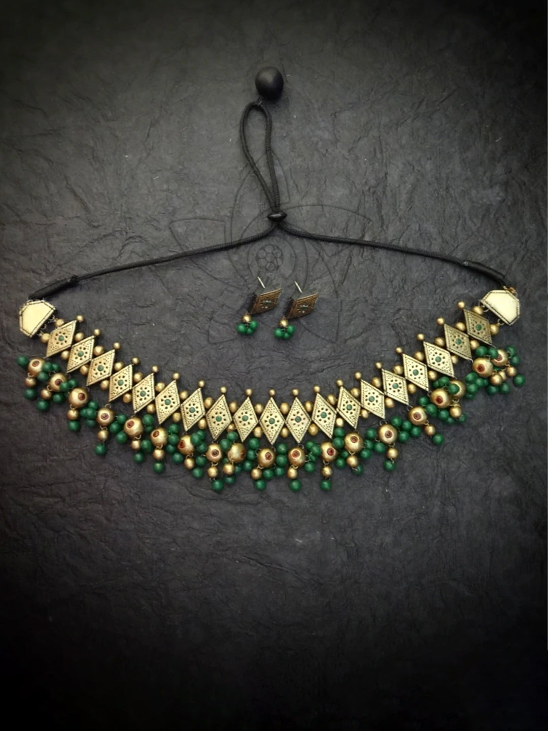 Rhombus Design Hand Painted Terracotta Jewelry Set