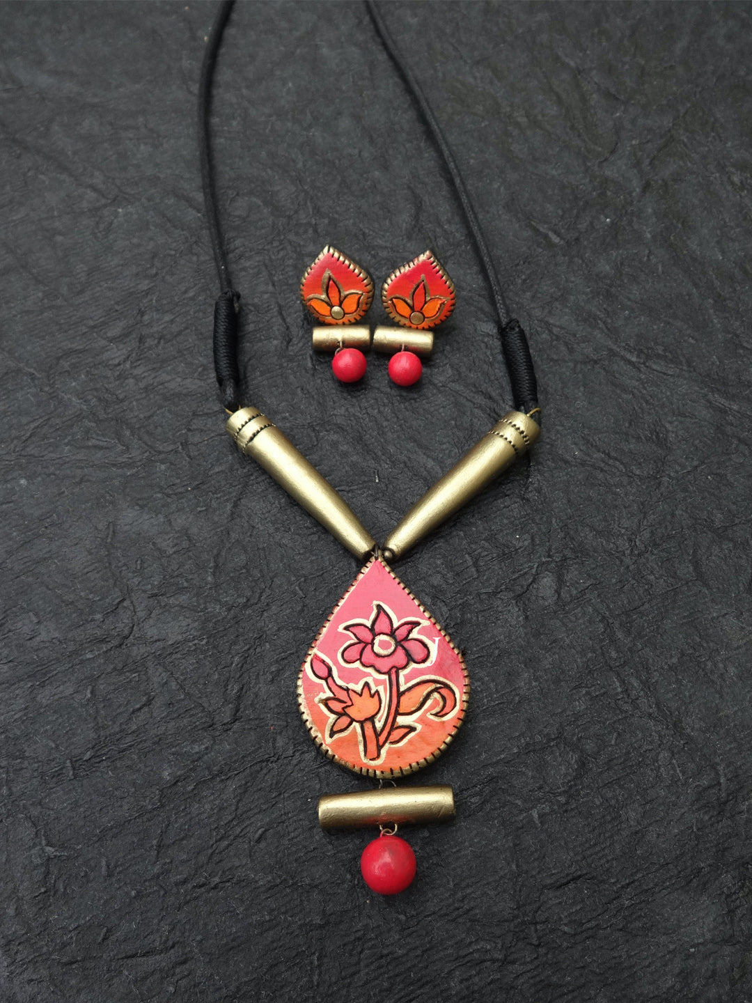Tear Drop Design Hand Painted Terracotta Jewelry Set