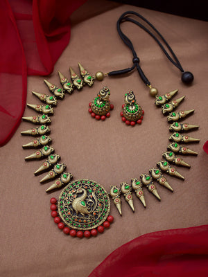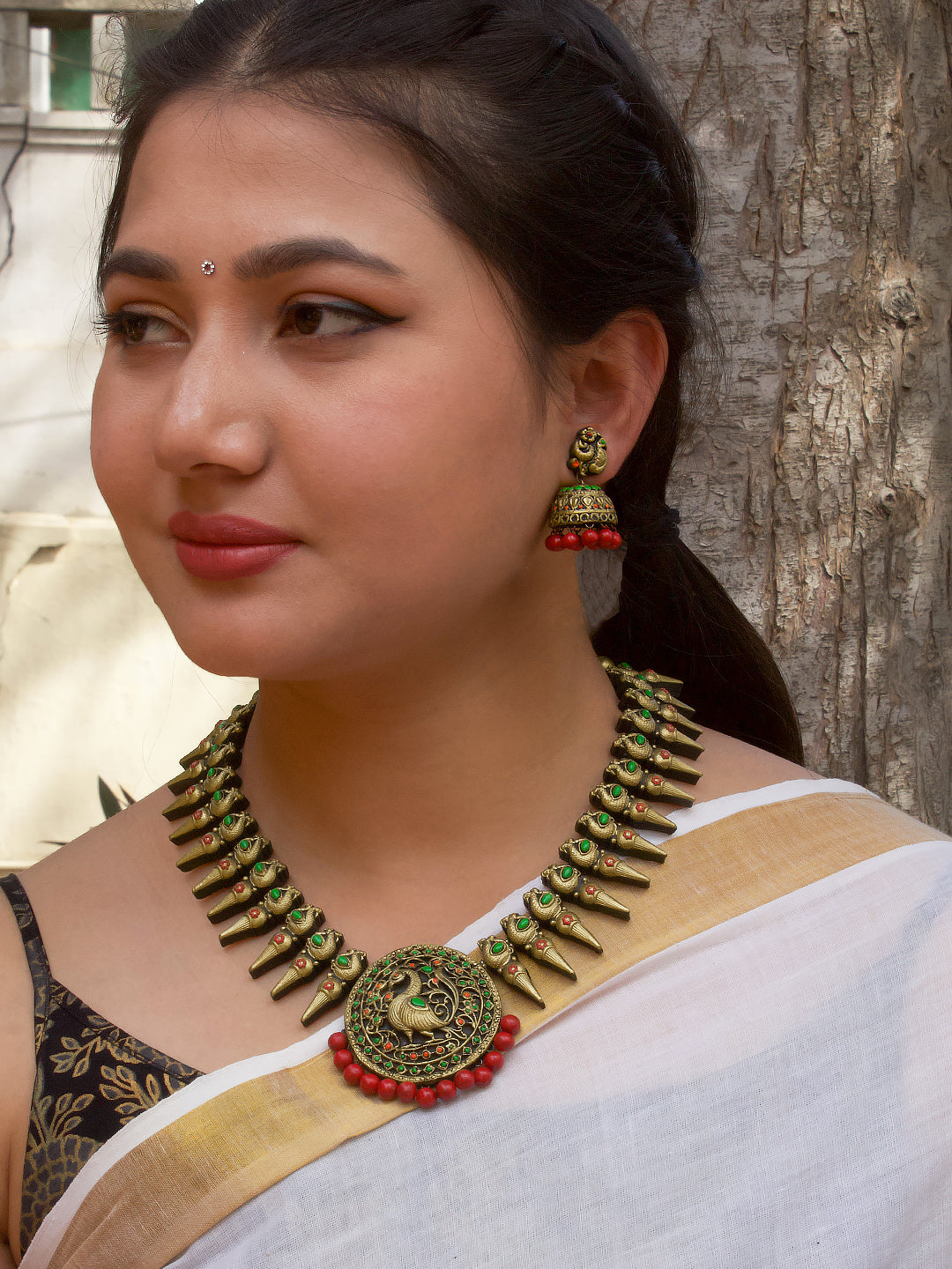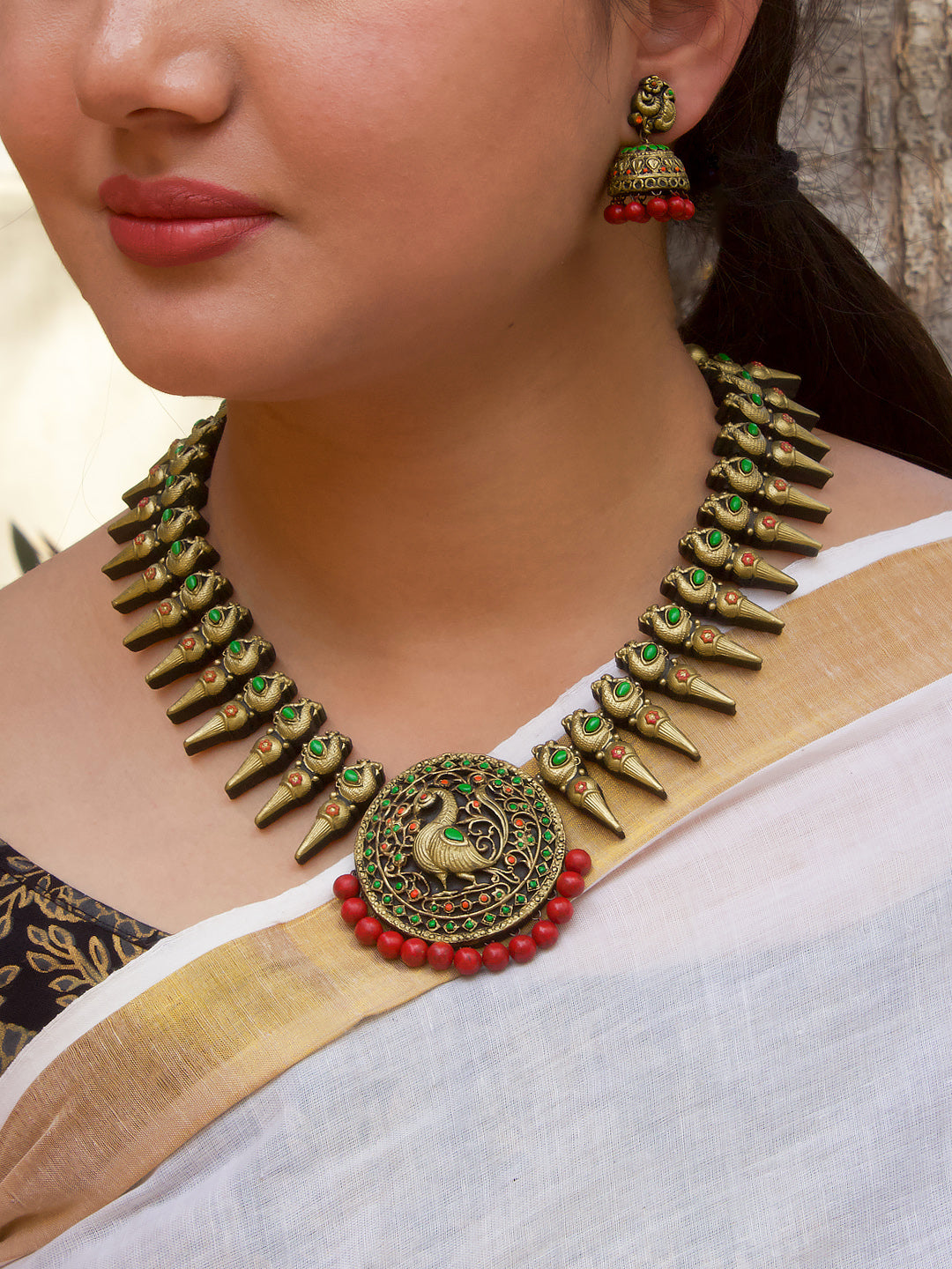 Home Peacock Design Hand Painted Terracotta Jewellery Set