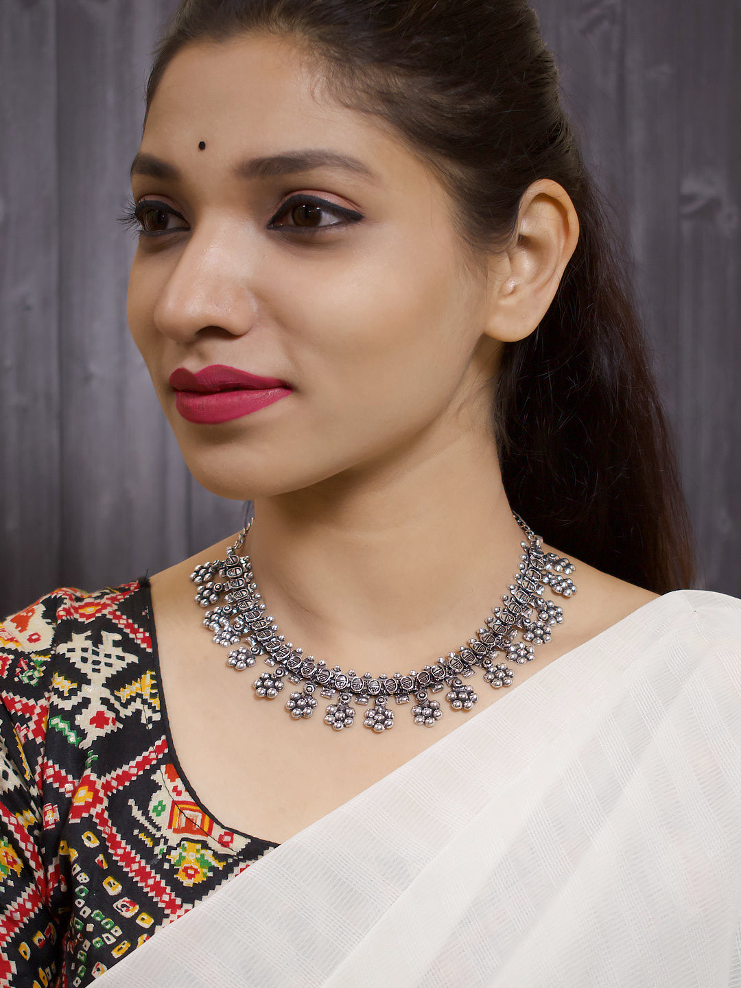 Home Flower Design German Silver Necklace