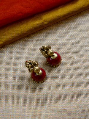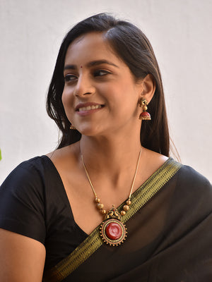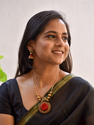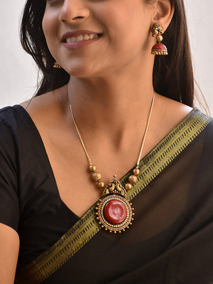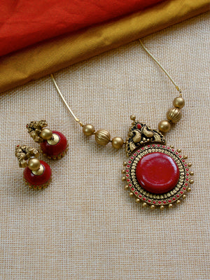 Beautifully Crafted Handmade Circular Design Red and Gold Indian Jewellery Set