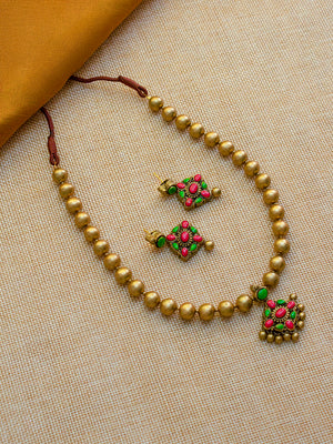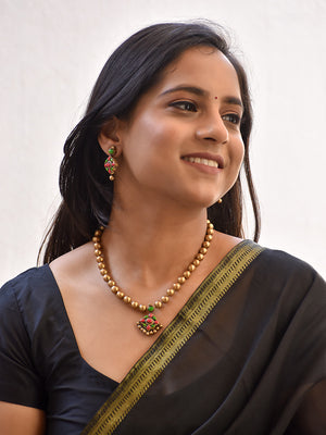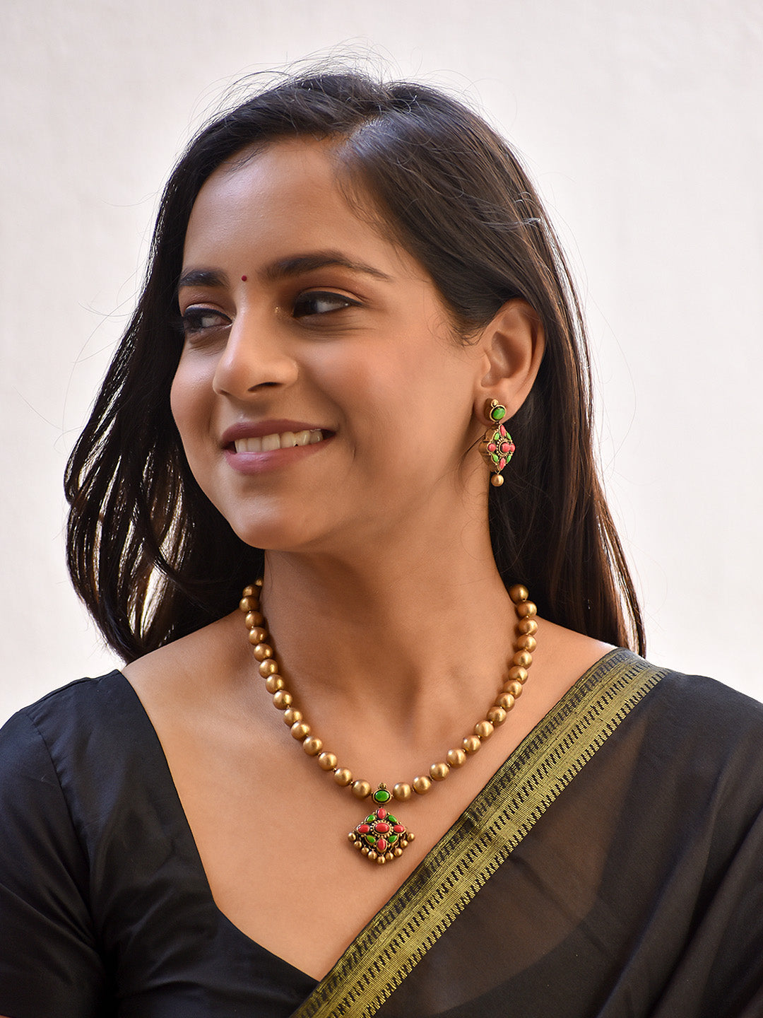 Beautifully Handcrafted Beaded Jewelry Set with Gold, Green, and Red Accents