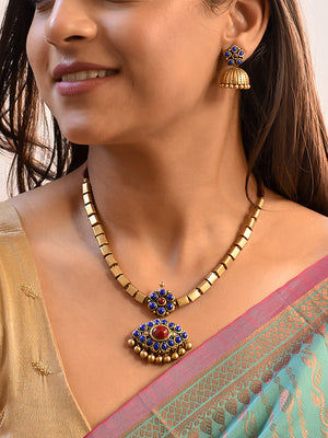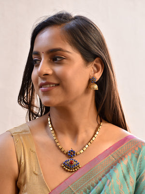 Neelamala — Attigai Design in Blue Shades Gold Premium Finish Jewelry Set in Fine Terracotta