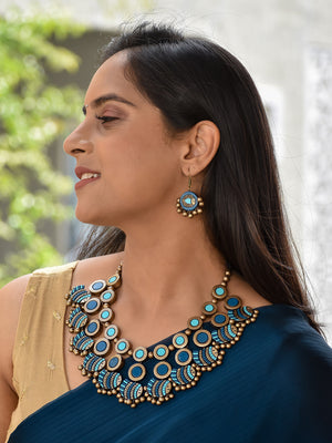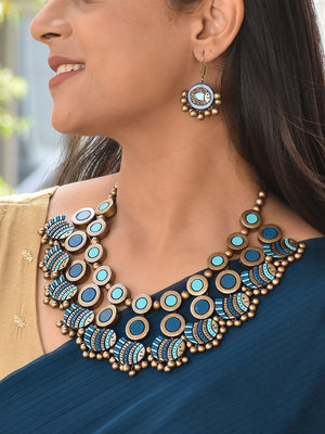 Beautifully Handcrafted Fish Terracotta Jewellery Set in Shades of Blue & Antique Bronze