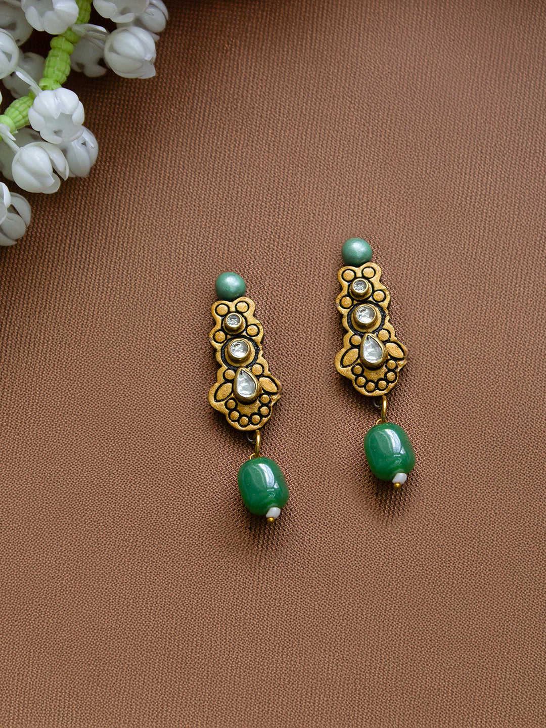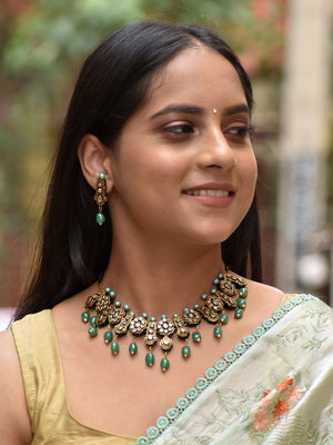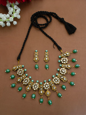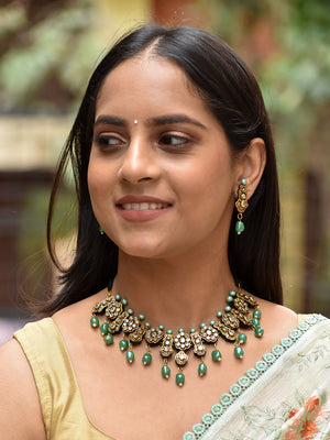 Beautifully Handcrafted Floral Terracotta Jewellery Set in Gold & Green with Kundan Stones