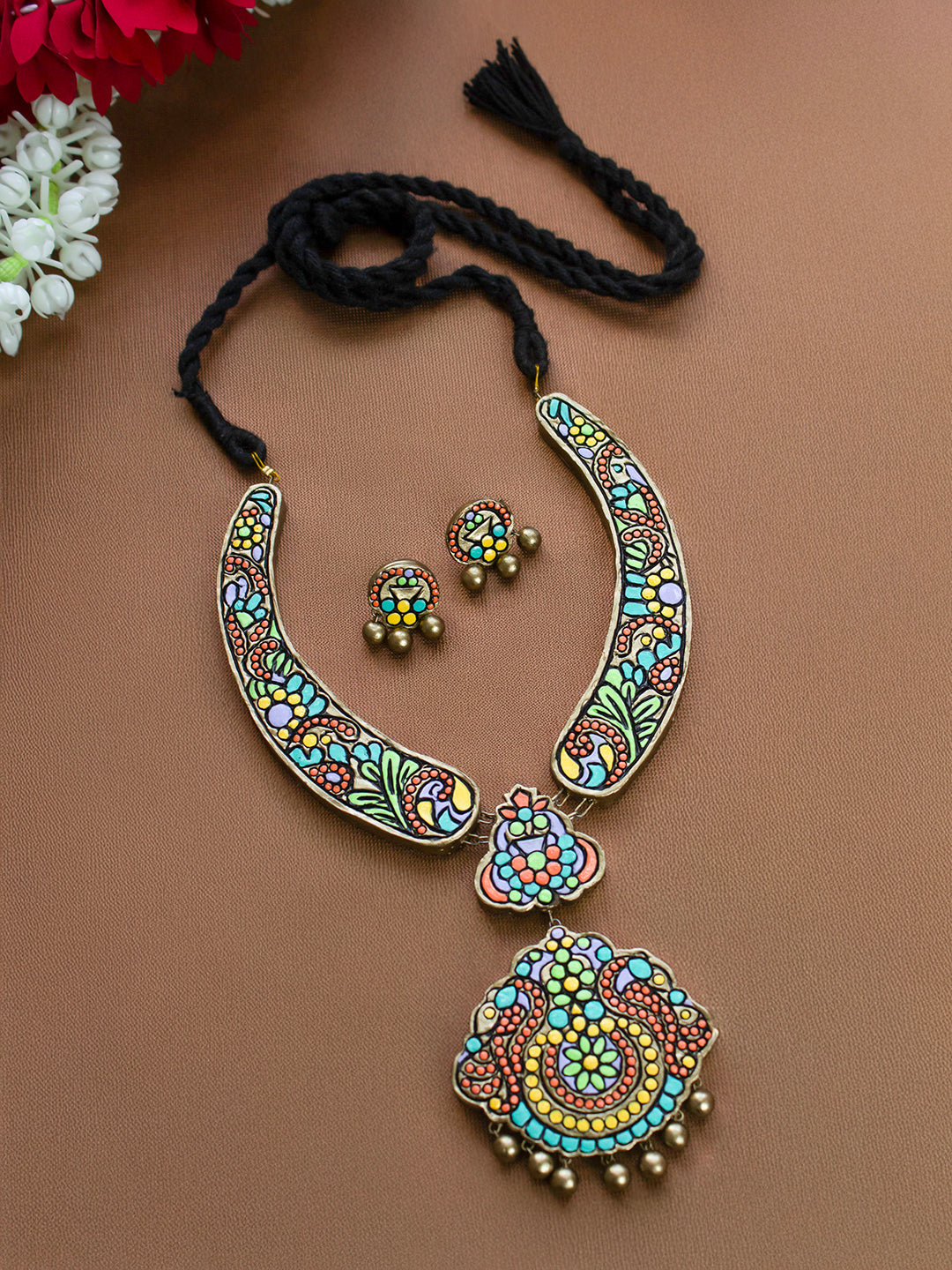 Home Beautifully Handcrafted Floral Terracotta Jewellery Set in Multicolor & Antique Bronze