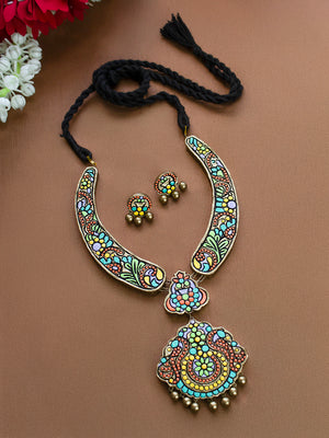 Beautifully Handcrafted Floral Terracotta Jewellery Set in Multicolor & Antique Bronze
