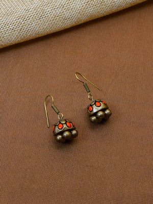 Beautifully Handcrafted Floral Terracotta Jewellery Set in Orange & Antique Bronze with Kundan Stones