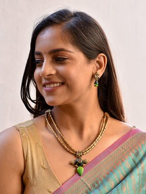 Beautifully Handcrafted Geometric Two Layer Terracotta Jewellery Set in Green & Antique Gold