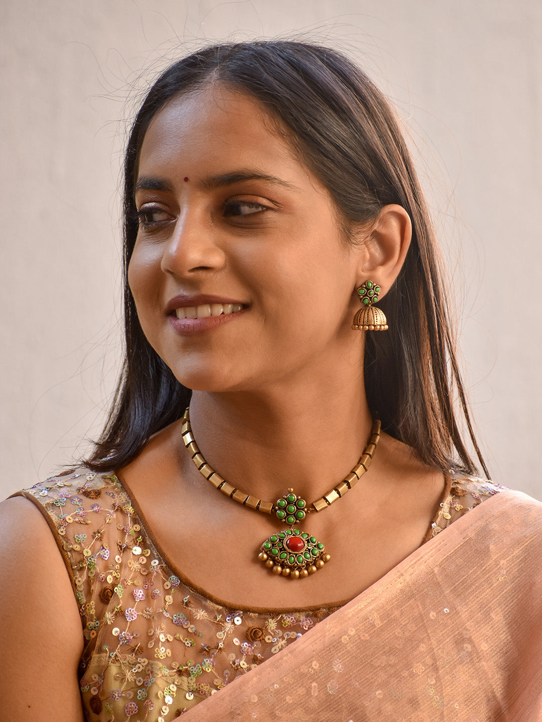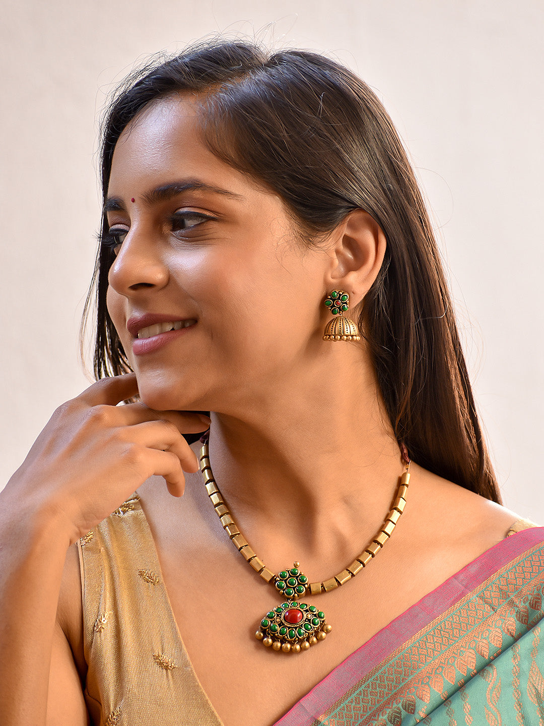 Home Famous ❤️ Attigai Design in Green 💚 Gold Jewelry Set