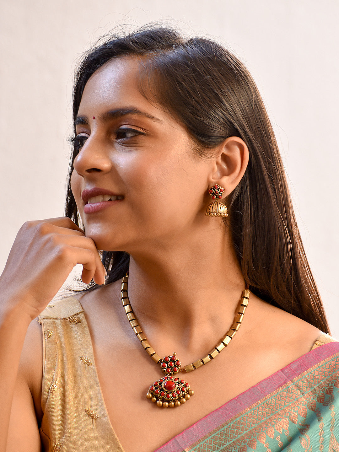 ❤️ Famous Attigai Design in Red ❤️ - Handcrafted Red Gold Premium Jewelry Set