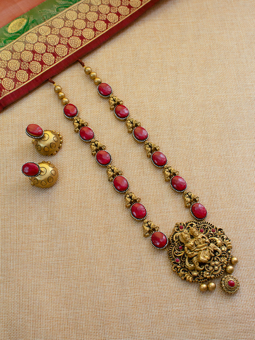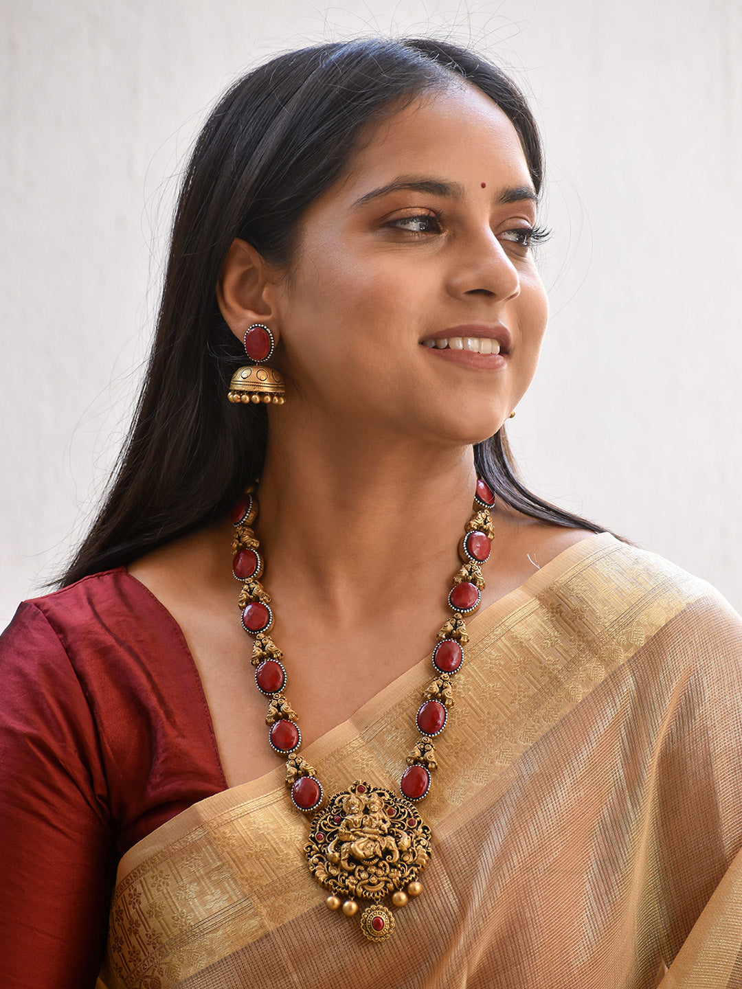 Divya Mandira — Beautifully Handcrafted Temple Terracotta Jewellery Set in Maroon & Antique Gold